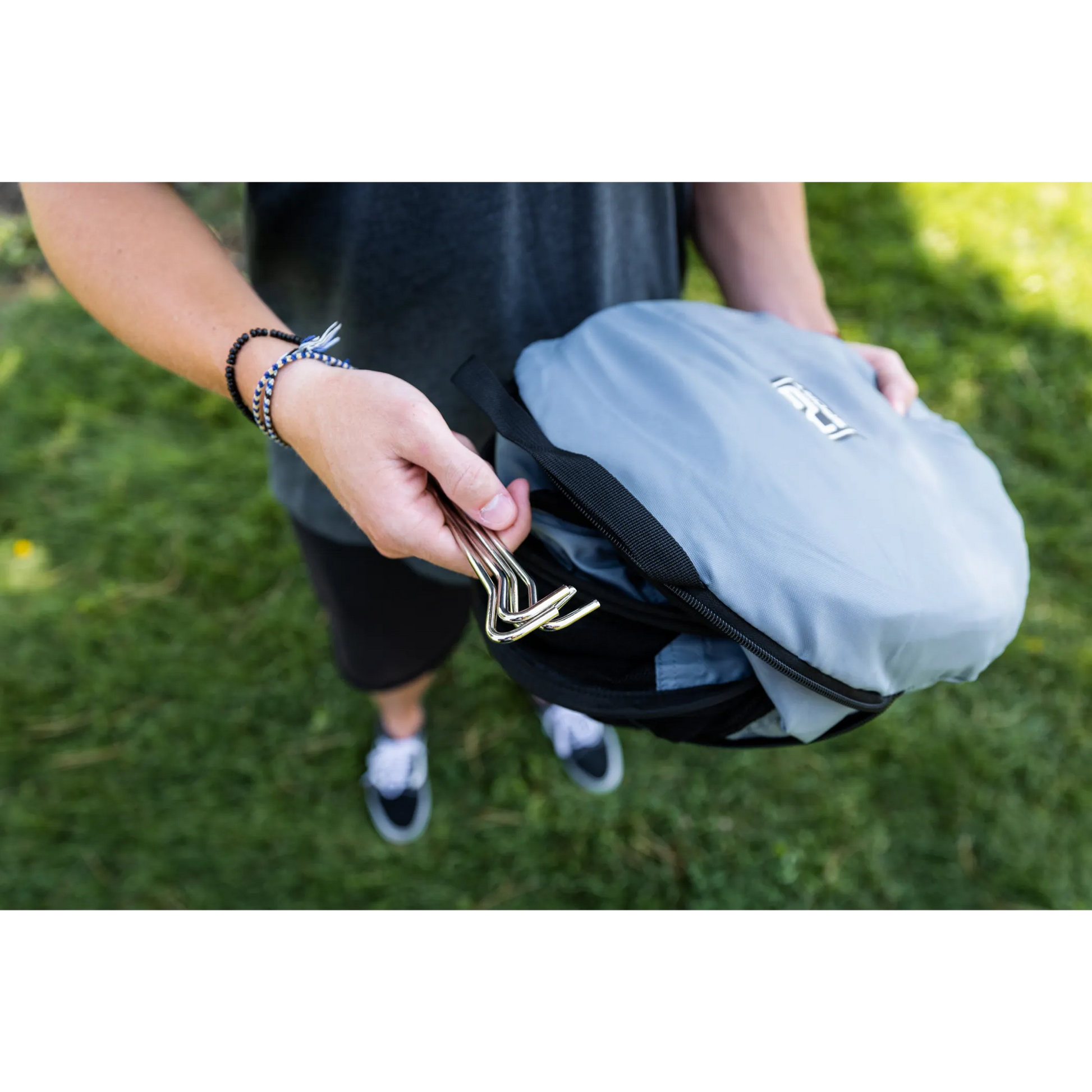 - Metal frame for easy folding