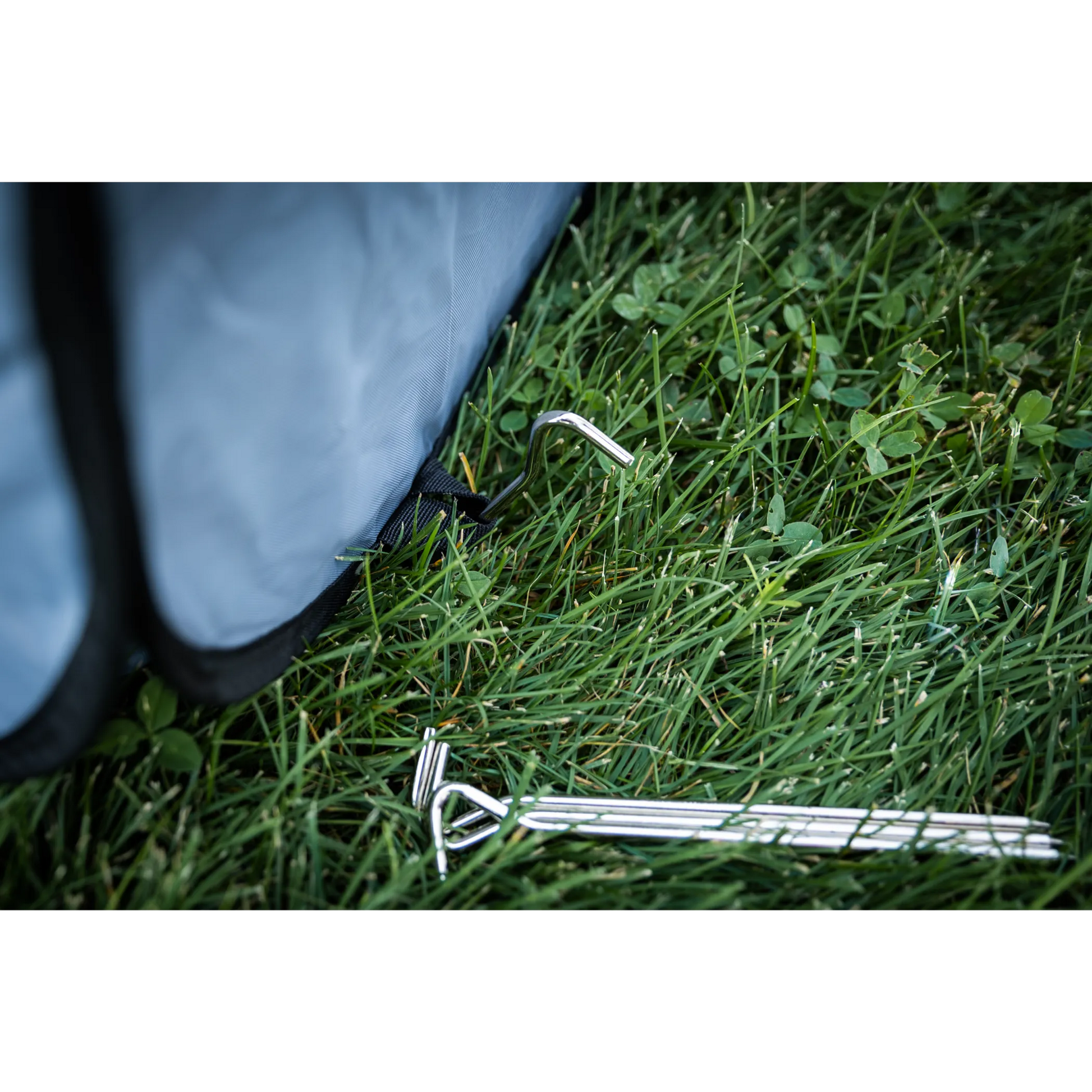- 4 aluminum stakes & fabric loops to secure your kennel in place