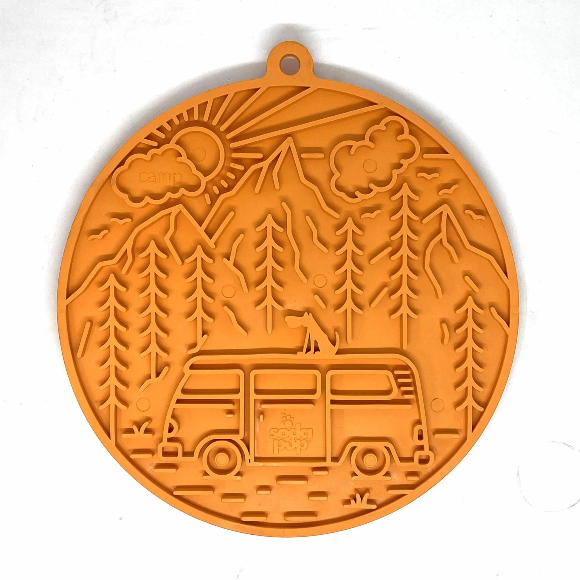 SodaPup eMat Enrichment Lick Mat Camp with Suction Cups Orange 8"