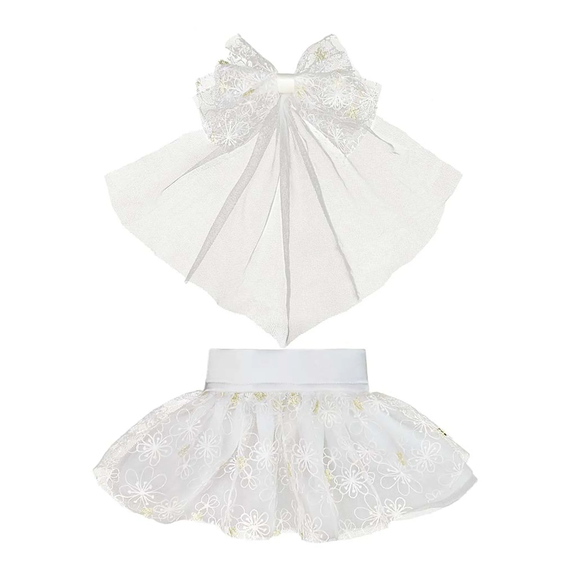Snap on waistband for easy wearCharming veil bowknotElegant dog wedding outfitFor all small girl dogs and cats